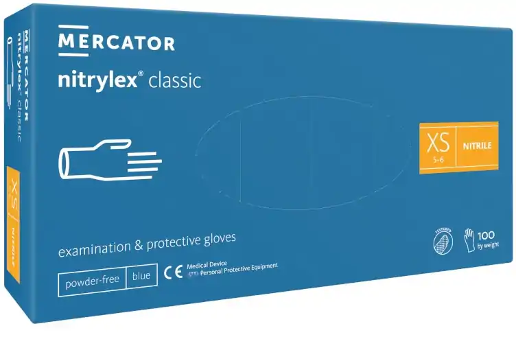 Mercator Rękawice Nitrylowe Niebieskie XS – 100 sztuk
